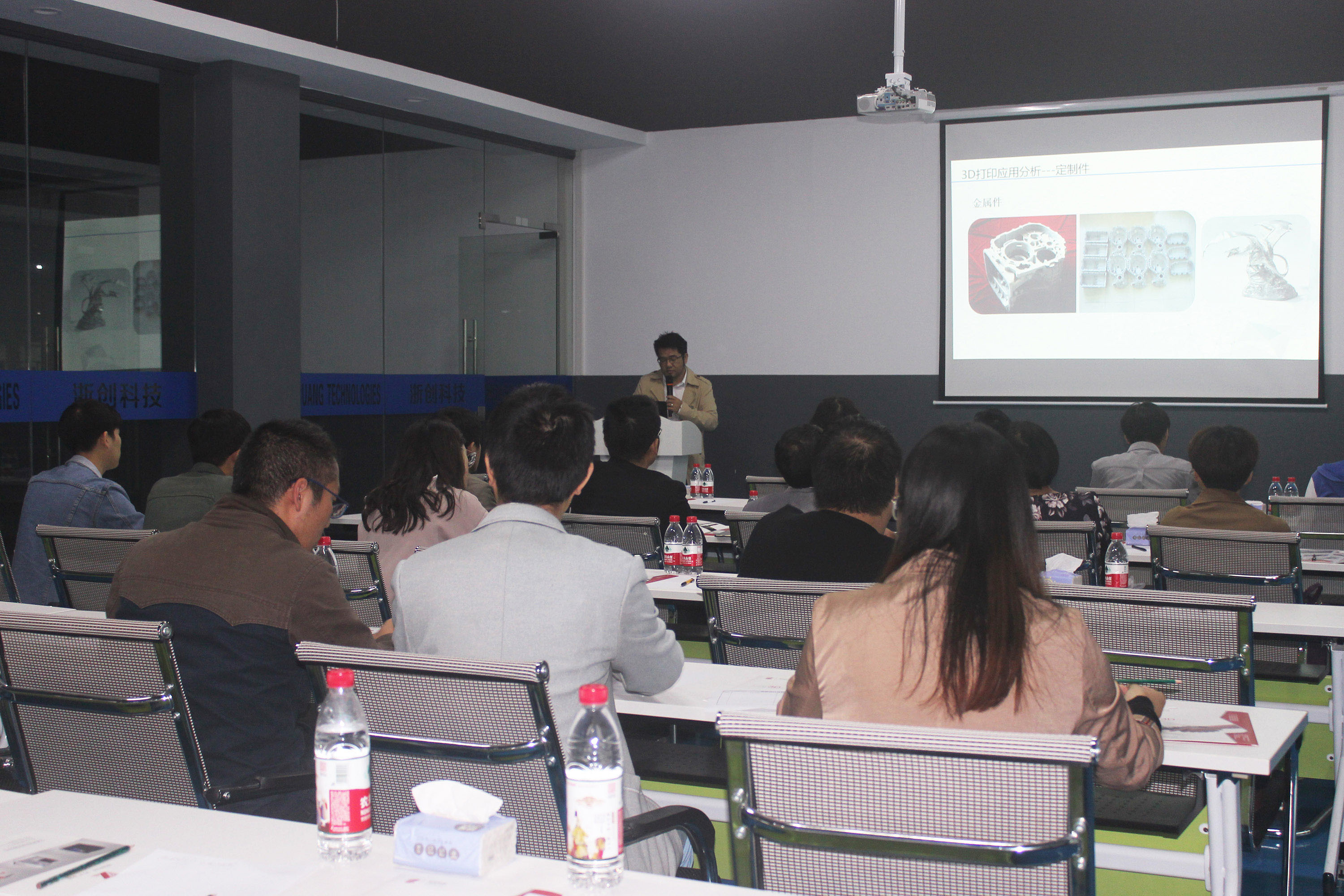 10月20日上午,“創新設計與智能制造”系列培訓第四講——“ 3D打印在家電產品開發中的應用及前景分析”免費公開講座在浙創科技會議室舉行。本次講座,聚集了慈溪各企業創新項目負責人、企業技術研發/開發負責人、中青年技術骨干等,主講人為浙創科技總經理陶霖珊。陶總經理介紹了3D打印的分類、應用分析和前景展望,以3D打印技術為切入點,探討家電行業新產品設計不同階段中3D打印的應用。