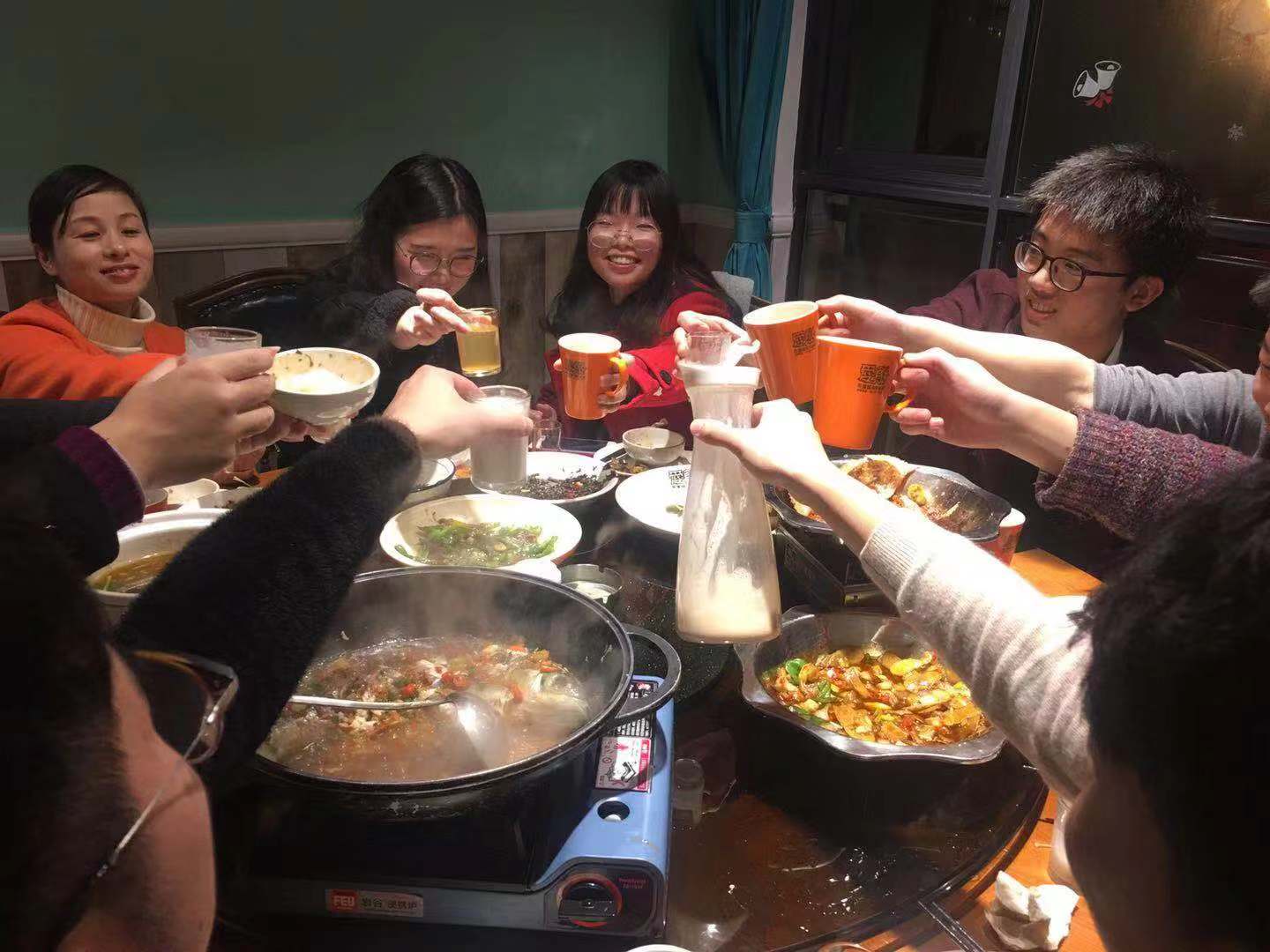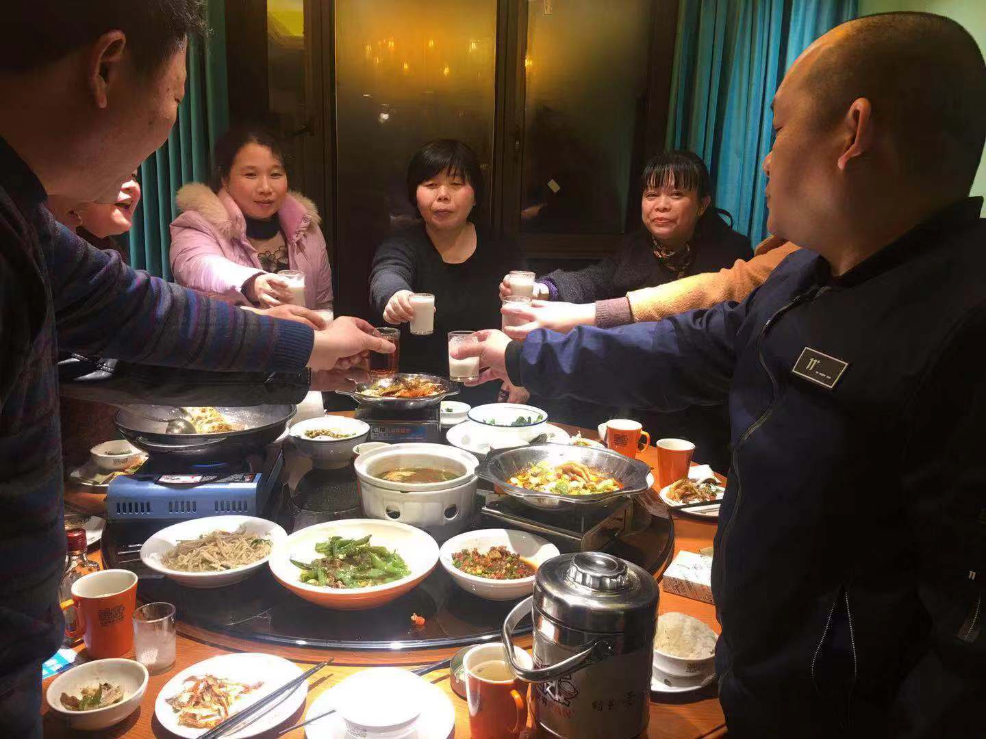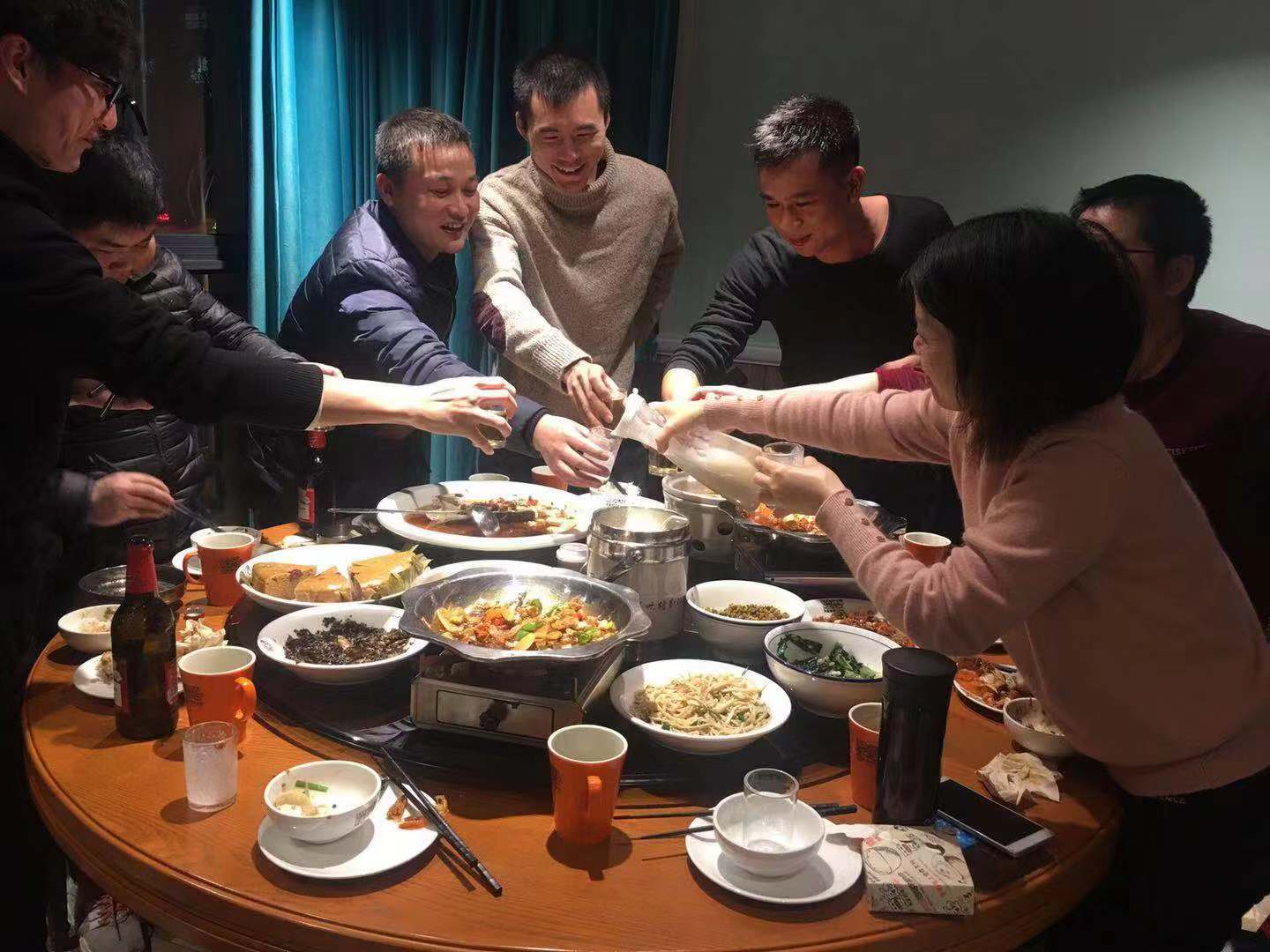 聚餐現場氣氛濃厚,大家其樂融融,紛紛提前送上對彼此的新年祝福。輕松愉快的聚餐,加強了員工之間的交流。聚餐到一半時,所有人舉杯共飲,預祝浙創科技再創輝煌。