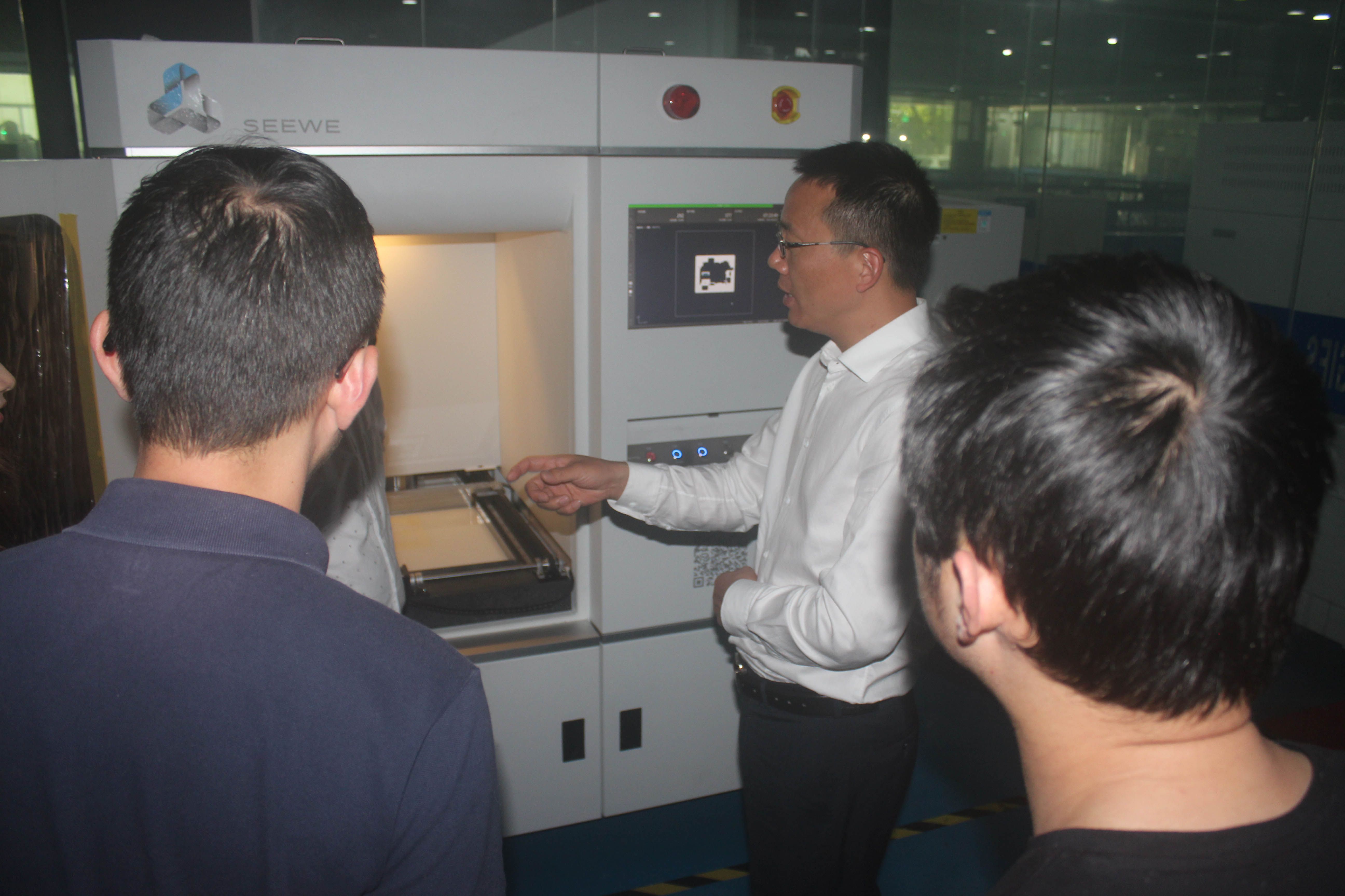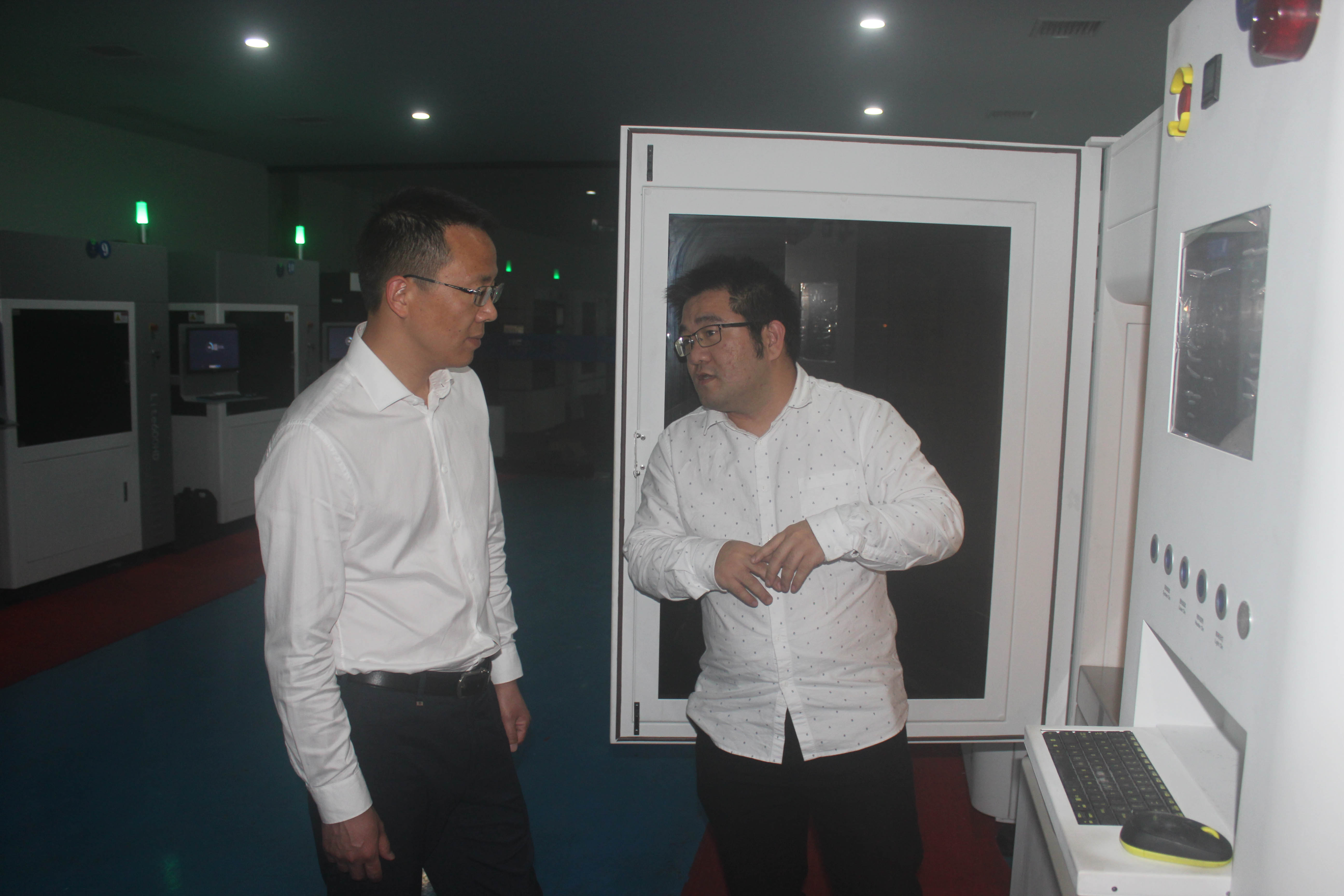隨后在陶總的陪同下,大家首先參觀了3D打印車間。參觀過程中,陶總講解了SLA工業(yè)級3D打印機(jī)打印流程,3D打印機(jī)的工作原理,組織領(lǐng)導(dǎo)觀察SLA成型方式,并展示了浙創(chuàng)自主研發(fā)的SLA工業(yè)級3D打印機(jī)及3D打印材料。在了解浙創(chuàng)3D打印園目前各項(xiàng)工作已經(jīng)有了完整的工序后,領(lǐng)導(dǎo)一行給予了認(rèn)可,并期望浙創(chuàng)繼續(xù)堅(jiān)持科技創(chuàng)新發(fā)展理念。